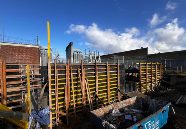 - New transformer bays, bund walls, equipment plinths and perimeter pavements.